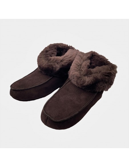 Diese halbhohen, leichten (unisex) Hausschuhe aus 100% Lammfell halten Ihre Füsse mit einem molligen Fellrand schön warm. Der Fellrand kann hoch gekrempelt werden. Der Hausschuh ist aus gewachsenen Lammfell gefertigt. Die Ferse ist extra mit Leder verstärkt. Die Sohle ist ebenfalls aus Leder mit eine Verstärkung zwischen Sohle und Fell. In Beige und Dunkelbraun erhältlich.