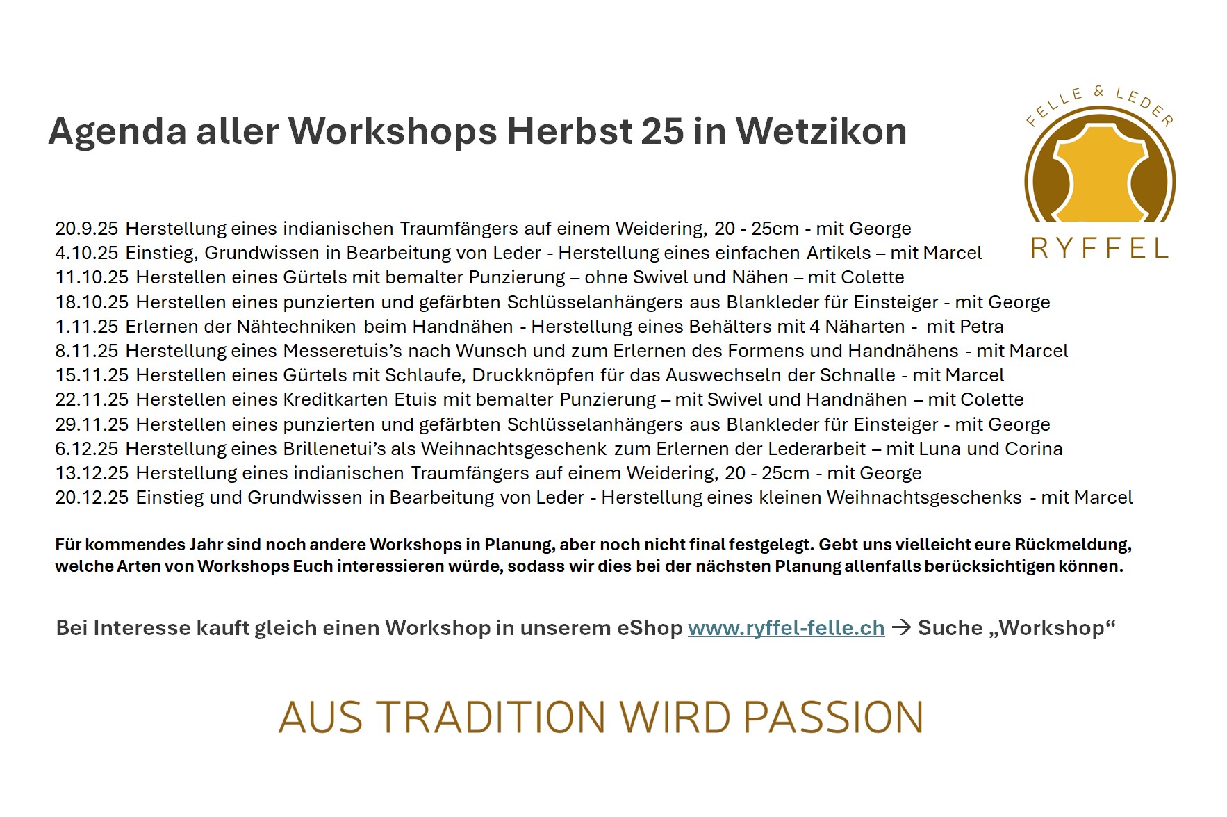 Anbei seht Ihr das 2. Kurs- und Workshop-Programm des Jahres 2025