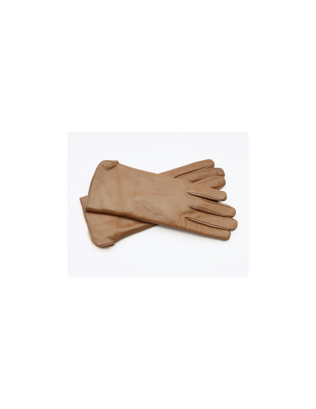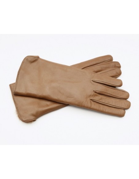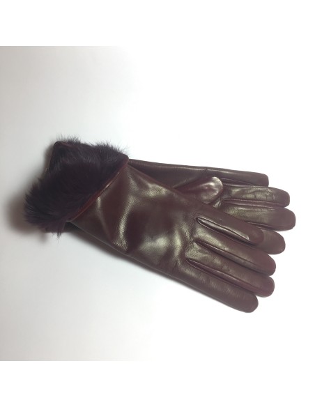 Die Handschuhe sind aus feinstem Ziegennappaleder gearbeitet und sind mit Kaninchenfell in gleicher Farbe gefüttert.