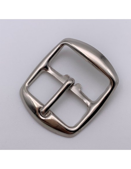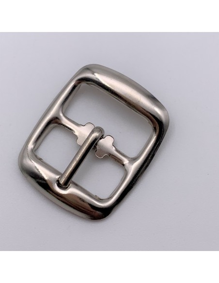 Schnalle mit Doppelbügel aus Blech, abgerundete Ecken.