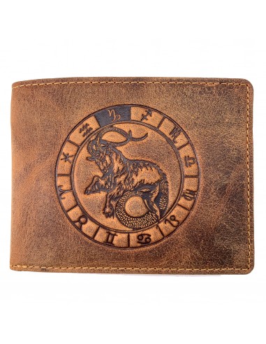 Kombibörse aus fettgegerbtem Rindsleder in rustikaler Optik mit einem Prägedruck des Sternzeichen.