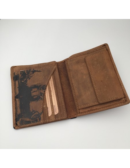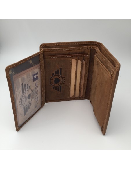 Kombibörse aus gefettetem Rindsleder in rustikaler Optik. Dezenter Prägedruck des Greenburry-Symbol (stilisierter Baum). Es bietet Ihnen viele Fächer für Kreditkarten, 2 Scheinfächer, ein transparentes Ausweisfach und ein Münzfach mit Druckknopf.