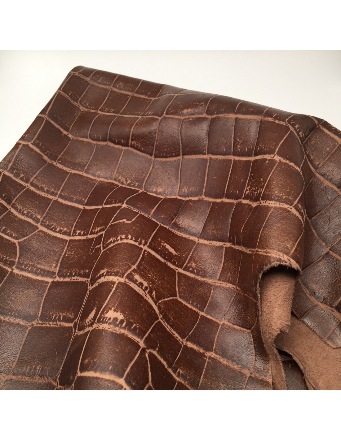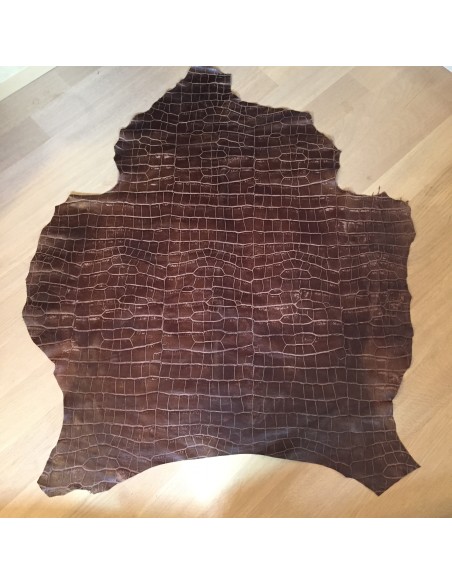 Lammnappaleder mit spezieller Kroko Prägung ( Lasergravur) braun durchgefärbt.