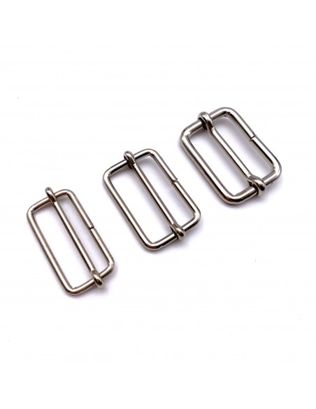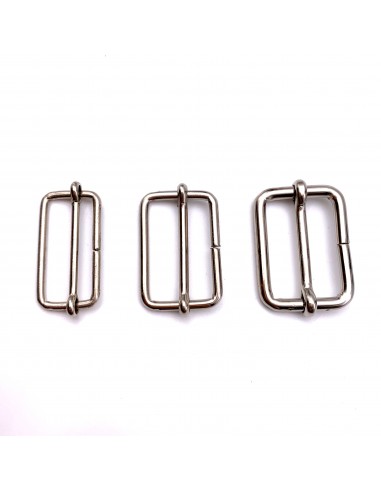 Einfacher Drahtring rechteckig aus gebogenem Stahldraht. Mit Steg um Trageriemen zu verstellen.