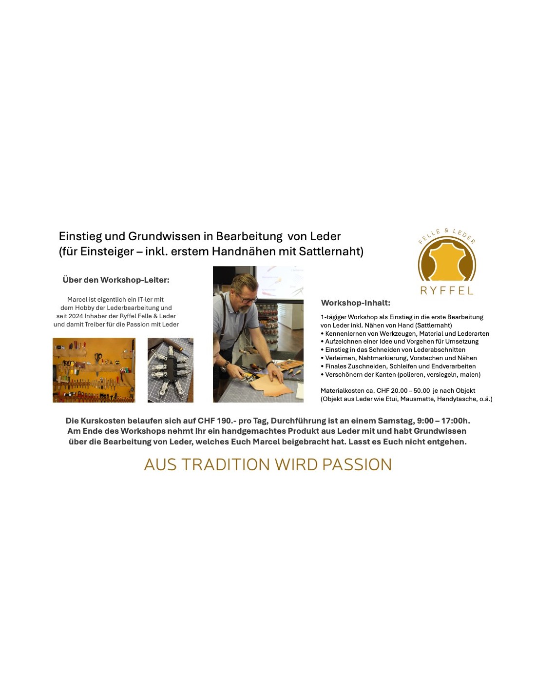 WORKSHOP: 25.04.26 Einstieg und Grundwissen in Bearbeitung von Leder mit Marcel