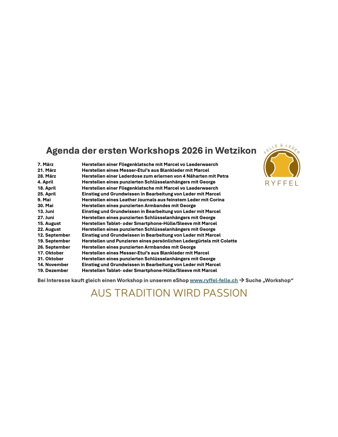 Durchführung am Samstag, 27. Juni 2026, 9:30 - 15:30h bei uns in Wetzikon.