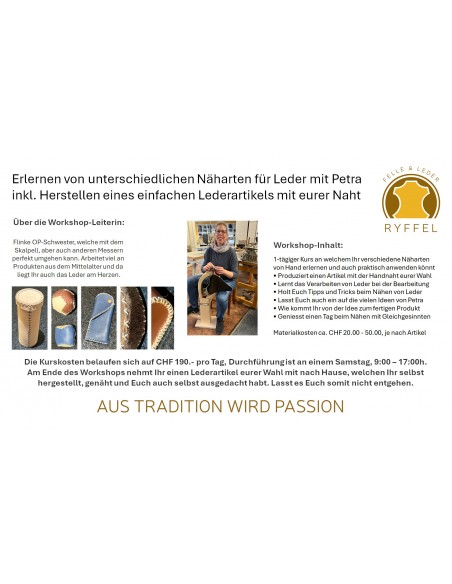 WORKSHOP: 1.11.25 Erlernen verschiedener Handnäharten für die Lederbearbeitung mit Petra