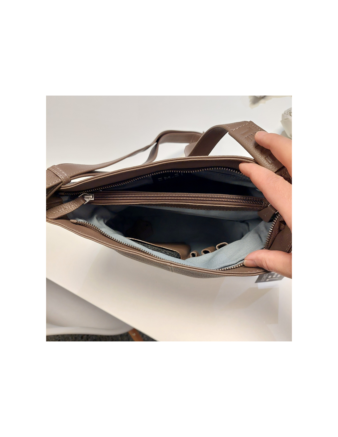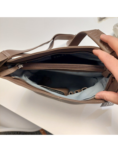 Rindleder-Tasche, Hauptfach geteilt mit RV-Fach, auf der Rückseite zusätzlich RV-Fach, RV- und Handyfach innen, Schulterriemen stufenlos verstellbar.