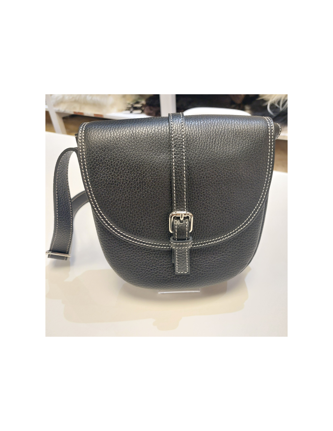 Rindleder-Tasche, Hauptfach mit RV-Fach, RV- und Handyfach innen, Schulterriemen stufenlos verstellbar.