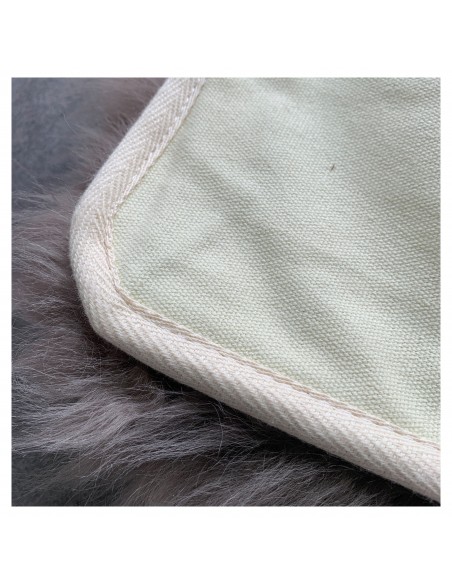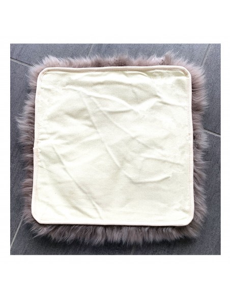Rechteckige Lammfellpad als Sitzunterlage auf Hocker oder auch für Haustiere als schlafplatz geeignet.